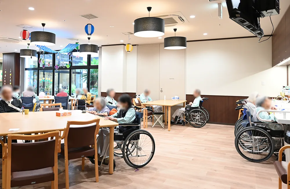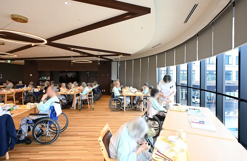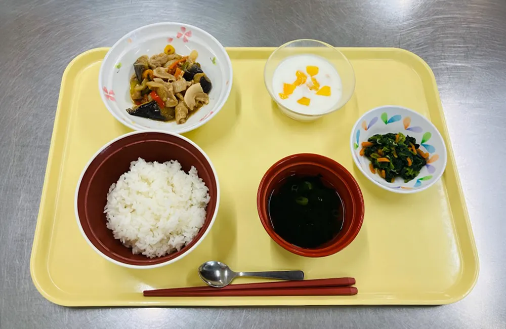 「お食事は、糖尿病食・減塩食などの療養食や、常食・一口大・粗きざみ・きざみ・ペースト食など、利用者様のお身体の状態や嚥下機能に合わせて提供しています」。