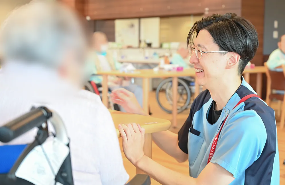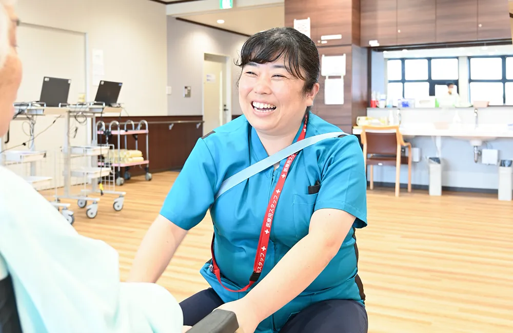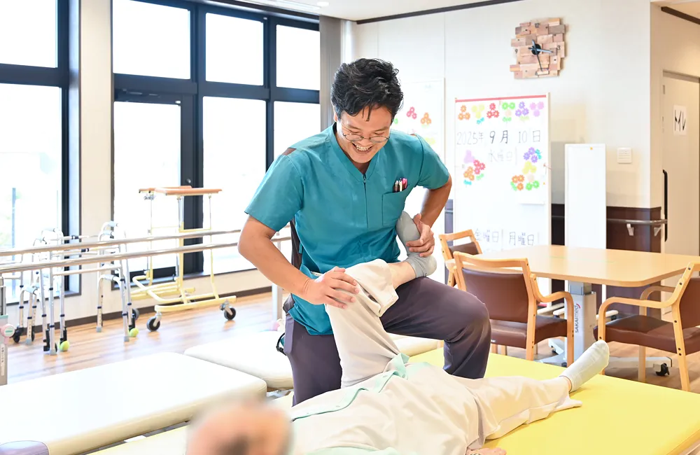 「利用者様の思い描く『なりたい自分』『望む生活』に近付くためのリハビリプログラムを作成させていただき、理学療法士・作業療法士・言語聴覚士をはじめ、多職種がチームを組んで支援にあたっています。通所利用者様の中には、当施設のショートステイを利用される方が多くいらっしゃいます」。