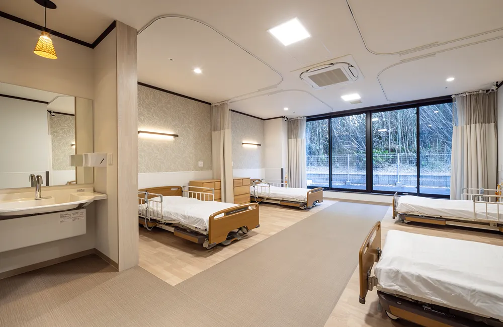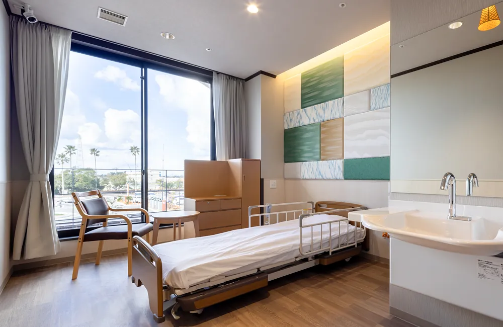 「当施設では、空床を利用してショートステイのサービスも提供していますので、退所後もご家族の介護疲れ・病気、または冠婚葬祭でご不在となる際などに、1泊2日から利用可能です」。