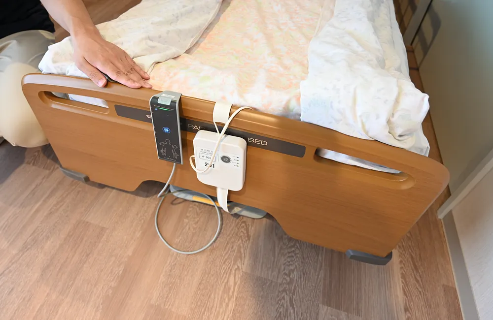 「ベッド装着のセンサーで、離床だけでなく体動・呼吸・心拍などのバイタルも検知可能で、異常値の場合はすぐにアラート通知が届くので安心です」。