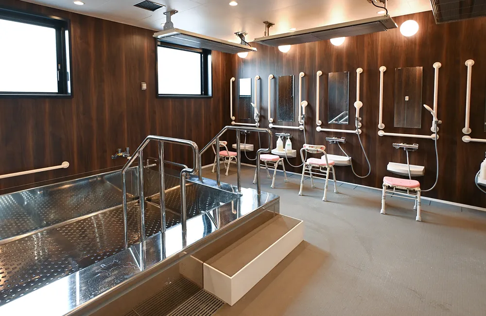 「浴槽は、一般浴槽・中間浴槽・機械浴槽の中から、利用者様の残存機能を活かせる浴槽を選択しています」。