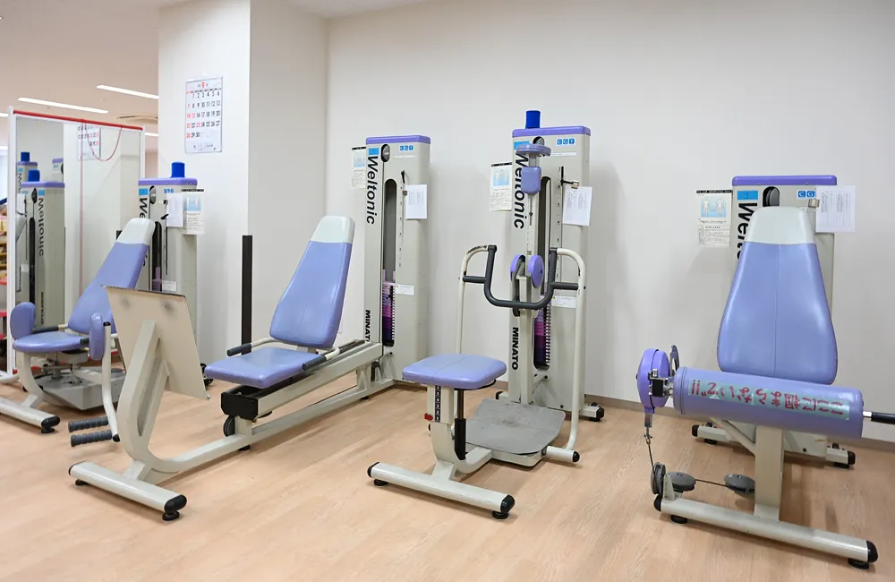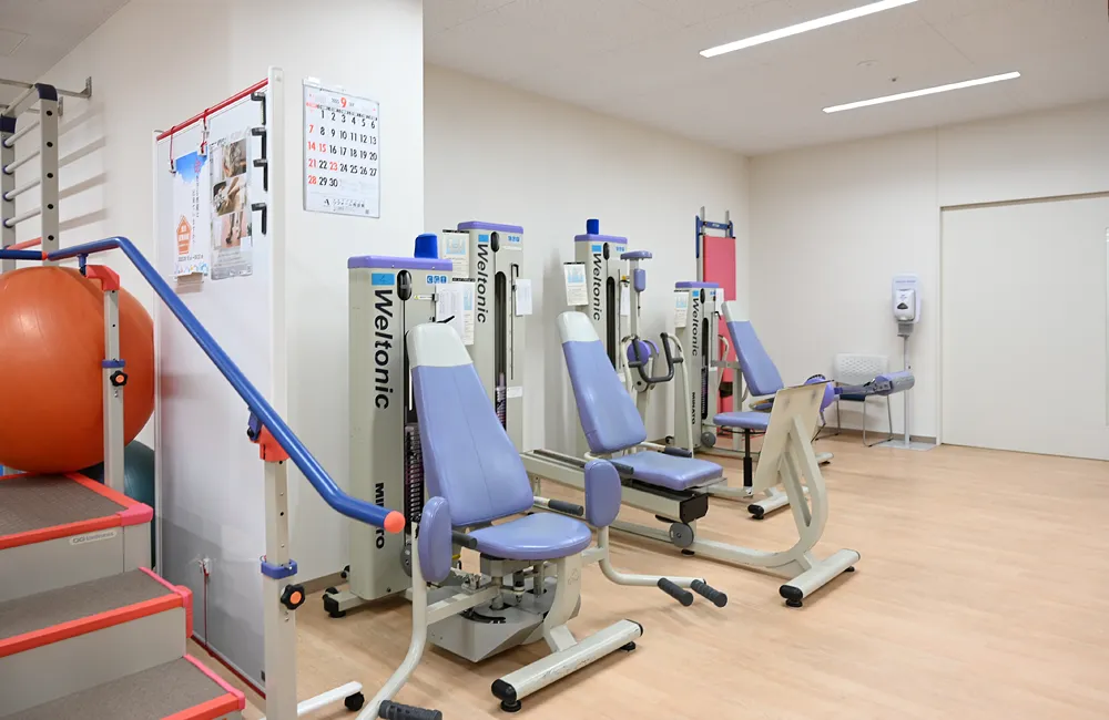 「主なリハビリは、立ち上がりや歩行などの基本動作練習・自宅内を想定した日常生活練習・エアロバイクやマシンを使用した筋力練習などの理学療法と、認知機能や精神面の回復を目指す塗り絵などの作業療法、安全にお食事していただくための嚥下練習、円滑なコミュニケーションのための言語療法です」。