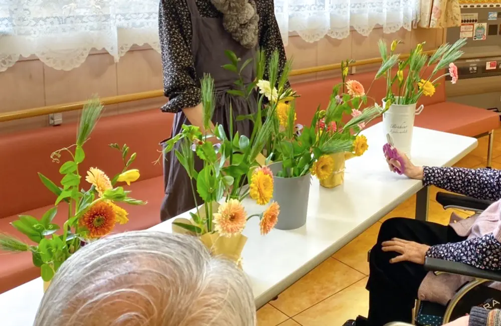 「当施設では、楽しみながら健康づくり・体力づくりに励んでいただけるよう、書道・フラワーアレンジメント・麻雀など、8つのクラブ活動の中から興味のあるものを選んで参加していただけます。クラブ活動は、共通の趣味や関心を持つ利用者様同士の交流の場にもなっているんですよ」。