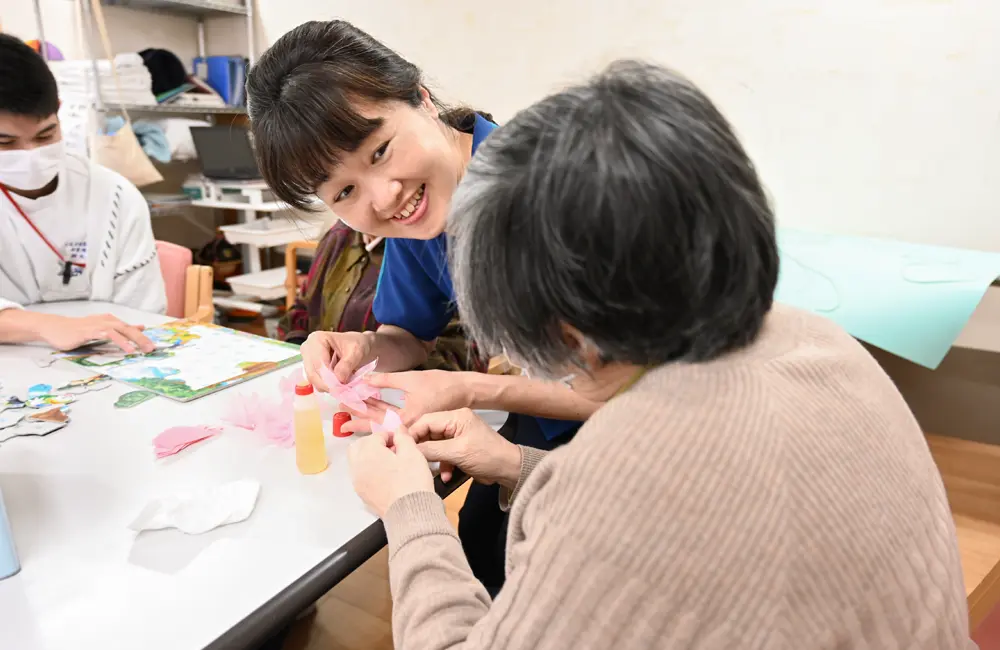 「当施設では、さまざまな専門職が連携・協働する『チームケア』を推進し、チームで利用者様の支援に取り組んでいます。多職種でのカンファレンス(ミーティング)を月に4回実施し、職種間で情報共有・意見交換を行って、利用者様お一人おひとりの『その人らしさの実現』につながるサービスの提供を目指しているんです」と、みなさん。