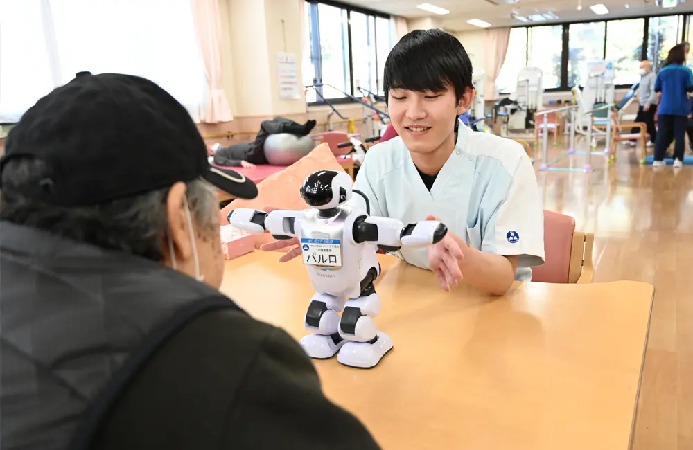 「パルロは人と楽しくコミュニケーションを取ることができる介護ロボットで、利用者様と会話をしたり、レクリエーションの際には歌ったり踊ったりと、その場を明るく盛り上げてくれます」。
